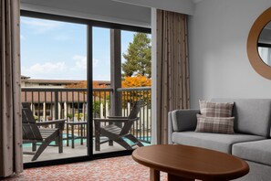 غرفة - سرير ملكي مع أريكة سرير - بمنظر للمسبح