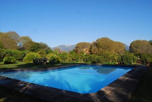 Travelers find rural bliss at Finca Son Vivot in Mallorca's rolling hills. The seasonal outdoor pool offers relaxation with sun loungers. Inside, the lobby fireplace warms guests after exploring. The property includes a library and bike rentals for countryside experiences.