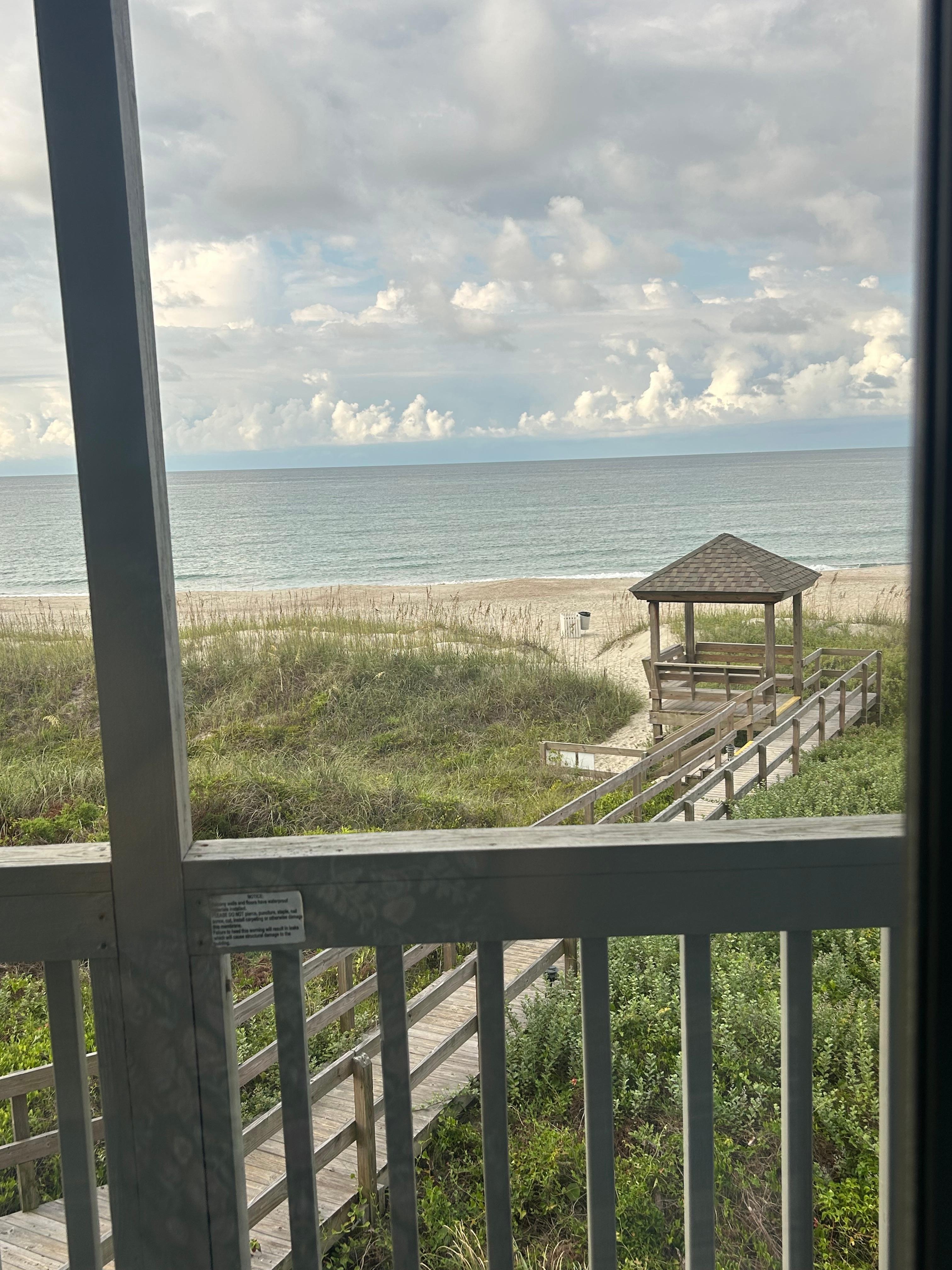 Upon your arrival at Dunescape Villas, you will find luggage carts and grocery shopping carts as well as an elevator to make moving into your home away from home simple and quick. There is a screened-in entry way / mud room in the front and a separate laundry room that has a full-size washer and dryer. The condo itself was recently renovated and freshly decorated. It features luxury plank flooring throughout, fully-equipped kitchen, separate wet bar with beverage refrigerator, oceanfront screen porch off the living room, and a separate oceanfront balcony off of the master bedroom.