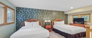 When entering the main home of Disciples Village 678, you are greeted with towering windows in your great room, overlooking the beautiful views of Boyne Mountain. The living room features a fireplace and gathering area for the whole family to enjoy. On the main floor you also have an updated kitchen, with everything you could need already provided. The master bedroom, with an ensuite, is also on the main floor and features a king bed. The guest bedroom on the main floor offers two queen beds and access to a 2nd full bathroom that is also convenient for other guests in the home.