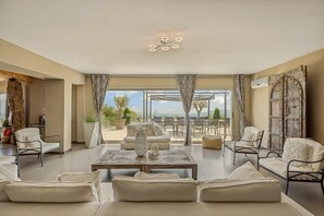 Six well-appointed en suite bedrooms offer flexibility and privacy, all with queen-size double beds, including a master suite with terrace. Practical touches such as air-conditioning throughout, a fitness room and daily housekeeping ensure a carefree stay.