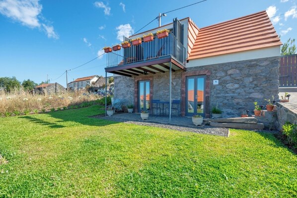 Refurbished from the original one on the land, the air conditioned one-bedroom Old Cottage still features the original stonework and has a spacious open-plan living area on the ground floor with sofa-bed, dining table for 4 and a fully equipped kitchen.