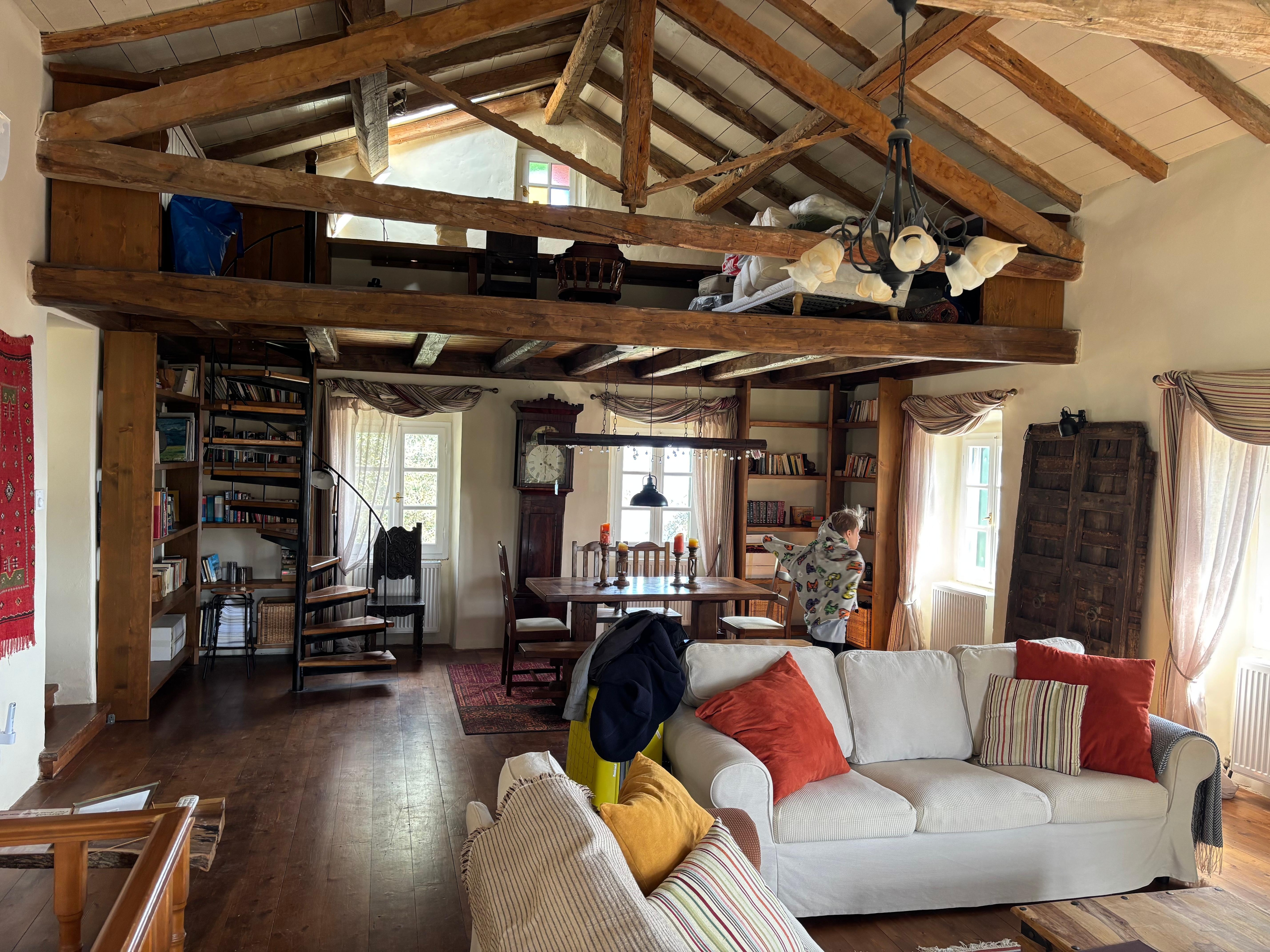 It is a 120 year old traditional stone building which means it stays cool in the summer and warm in the winter. The 2 bedrooms and bathroom are downstairs while the large living room and kitchen are on the upper floor; maximising the stunning views which reach as far as the south of the island. There is air conditioning in both bedrooms and on the top floor. Though often not needed as the 8 windows allow breezes easily to cool the house. The twin beds can be put together to create a second double bedroom.