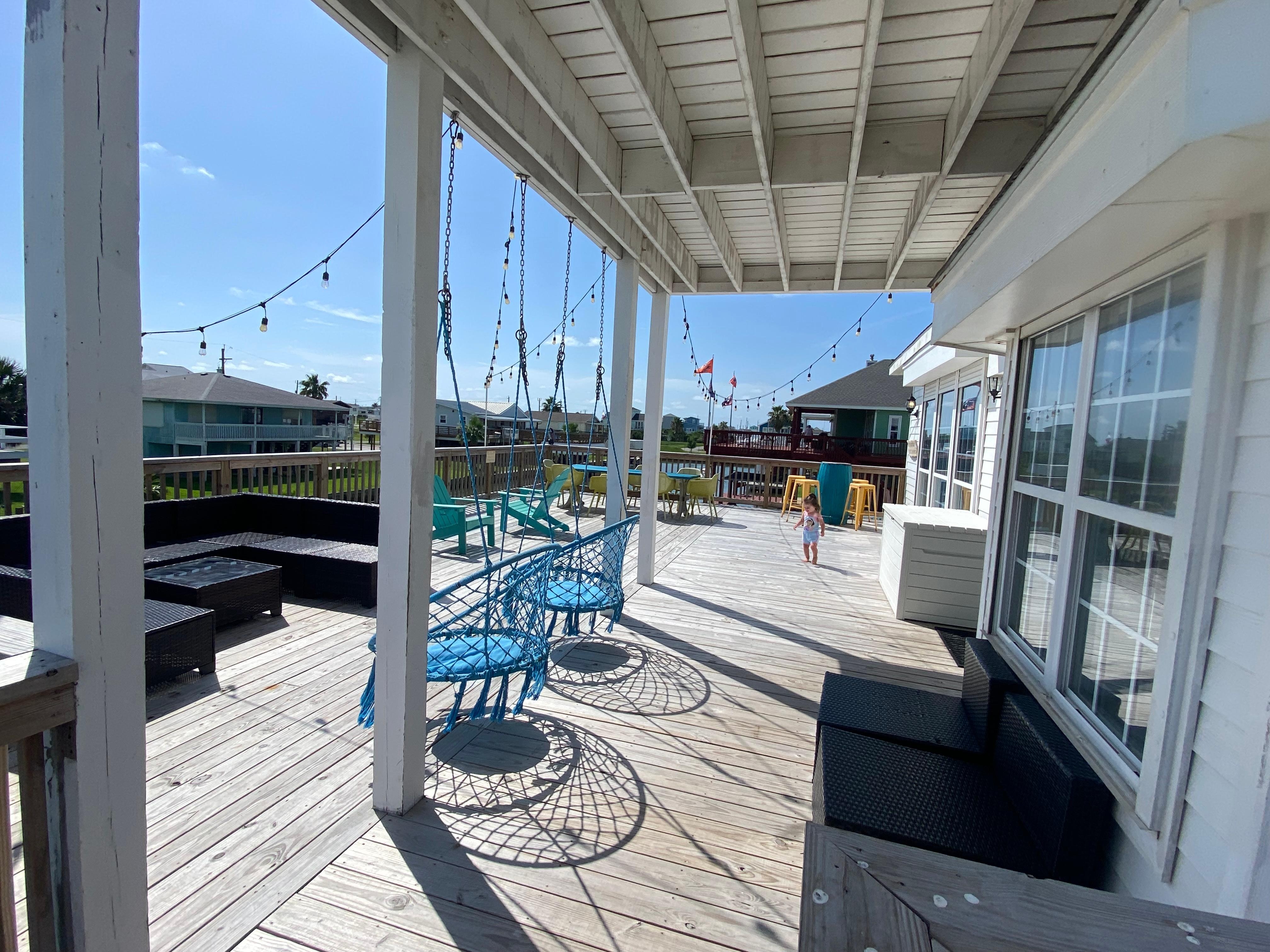 On the water rental property with brilliant front and back water views, very close to the open bay perfect for entertaining or for rest and relaxation away from the crowd in this peaceful neighborhood. Truly one of Galveston's hidden gems!