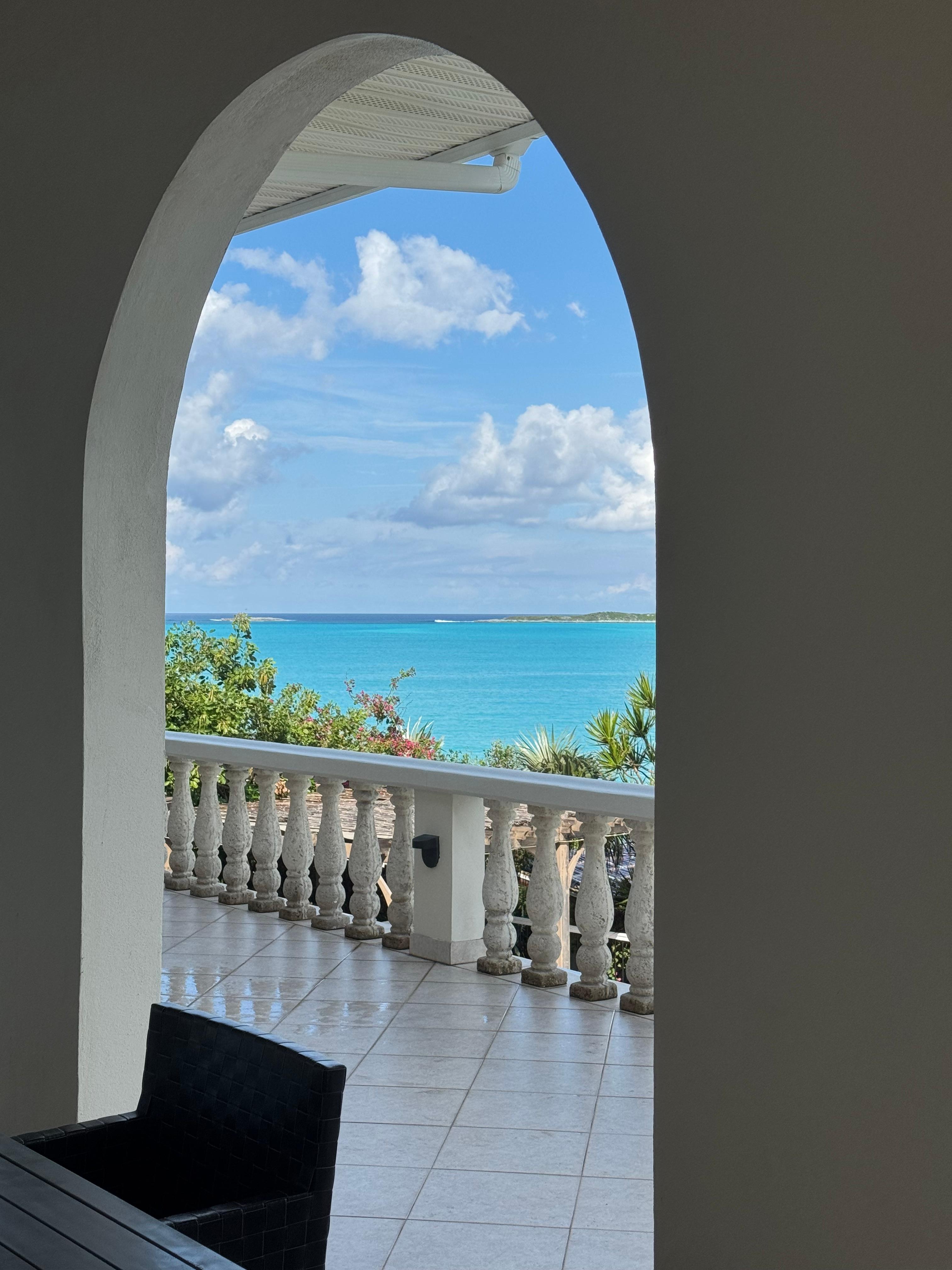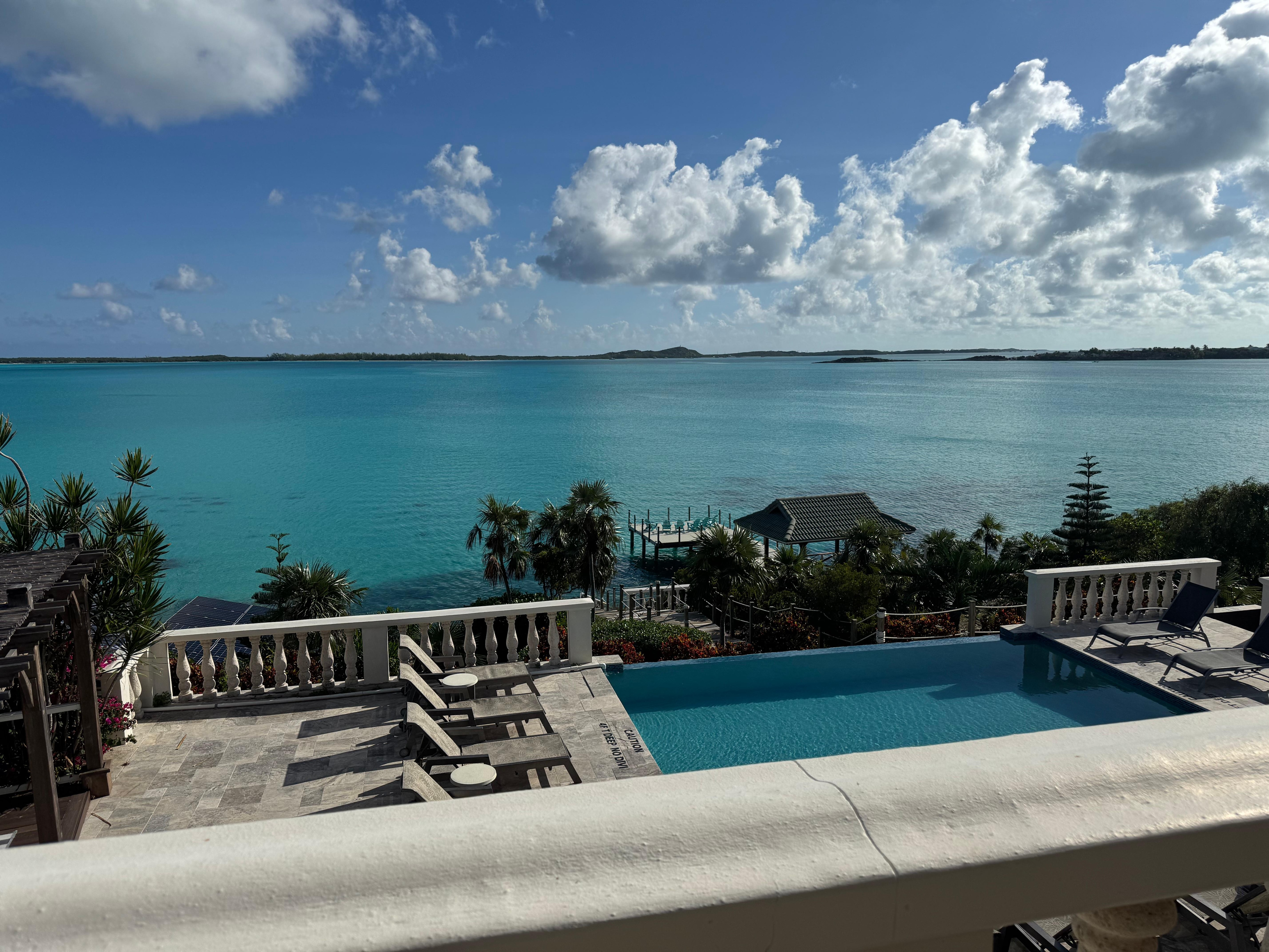 The 526 sq. ft. master bedroom, with 5 piece ensuite bathroom and spectacular views of Elizabeth Harbour is separated from the main house by a covered breezeway, allowing for more privacy.