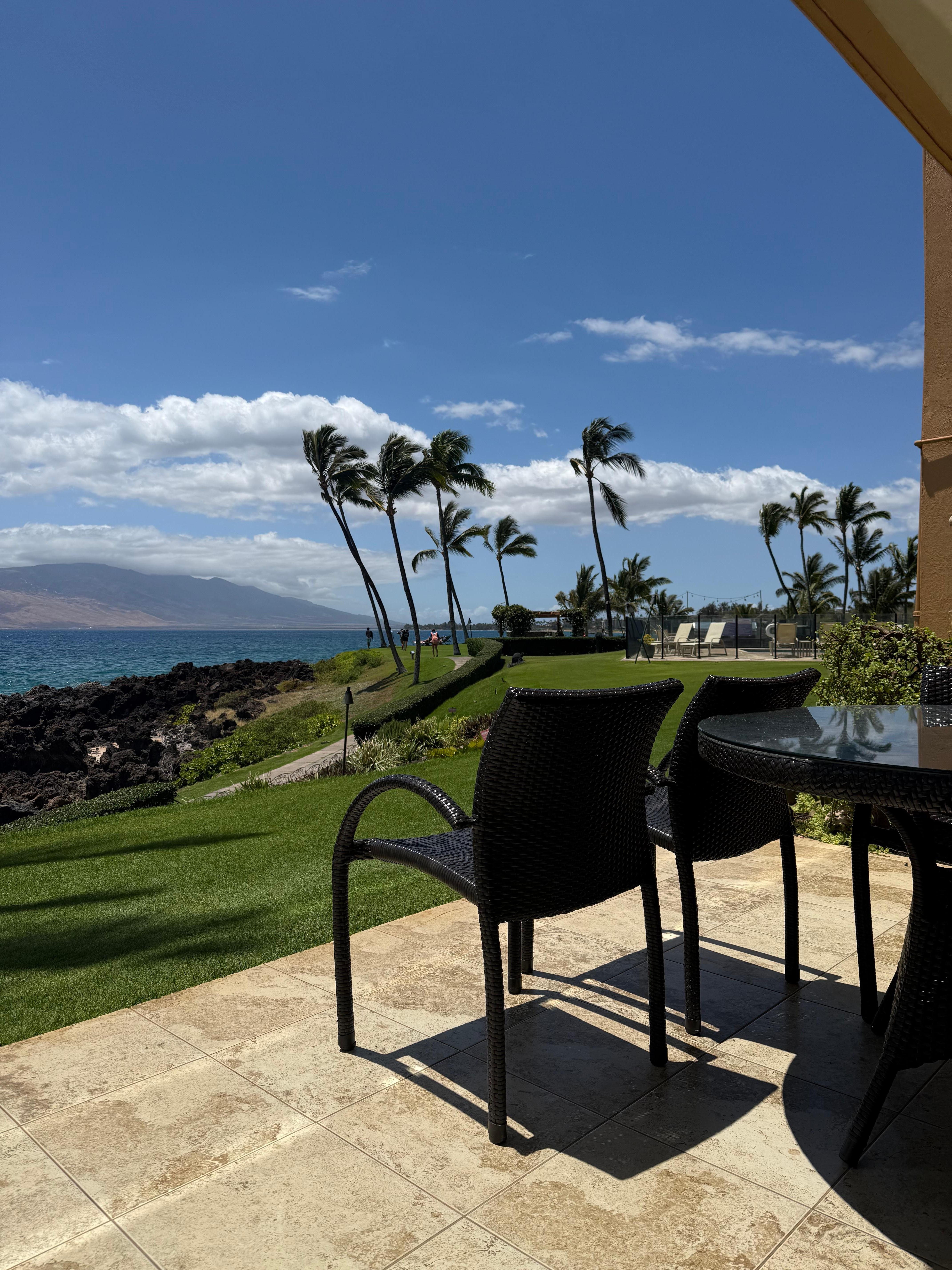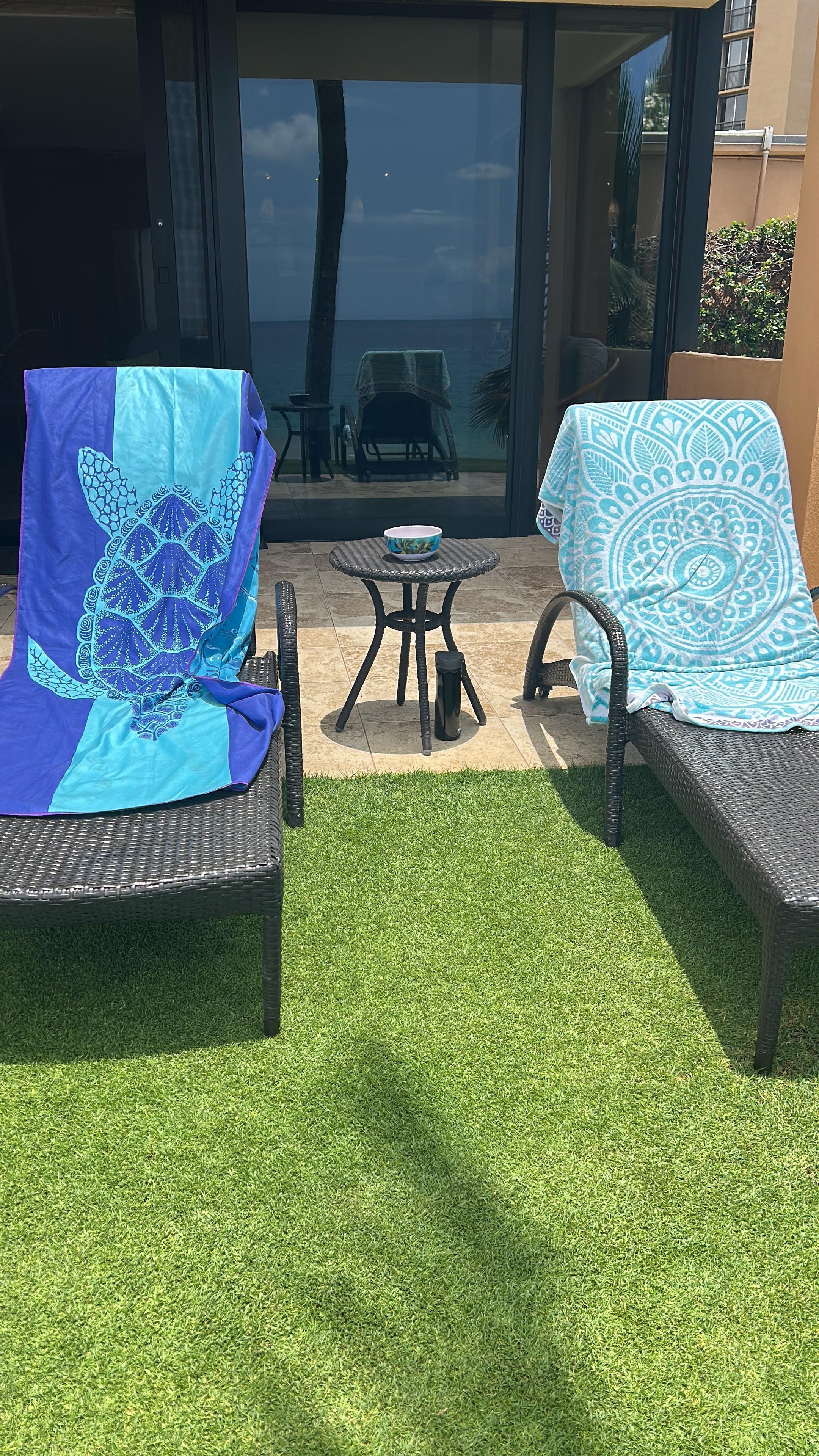 The oversized lanai has two matching lounge chairs, and there is a full size patio table with seating for four - a spectacular place to enjoy your morning coffee or a romantic oceanfront dinner! Turtles and dolphins can be seen year round, whales in season.