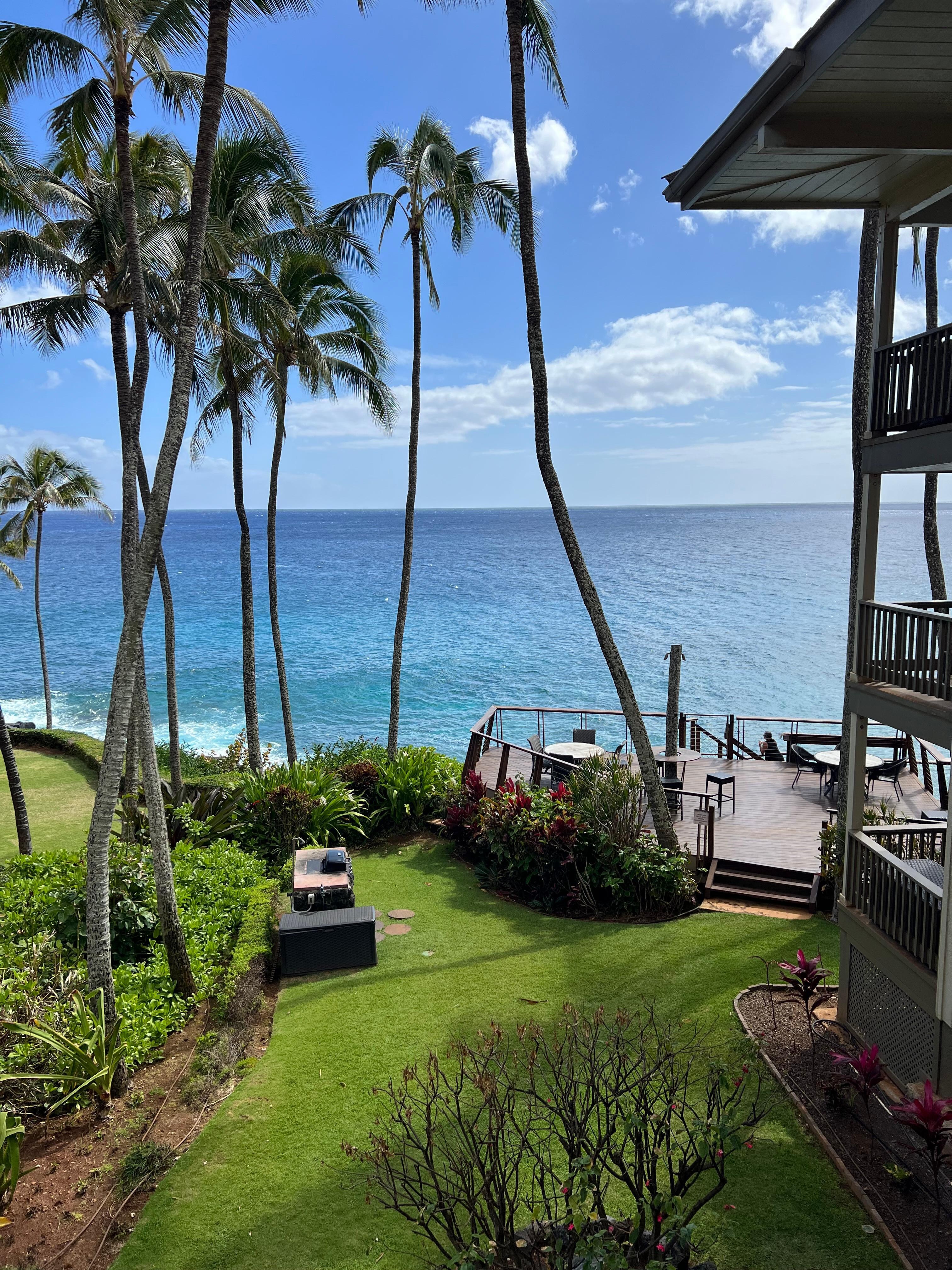 Palm trees and the beautiful blue waters of the Pacific Ocean greet you the second you open the front door of Poipu Palms 202.