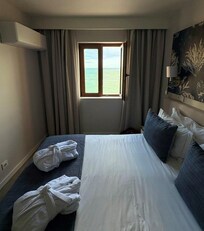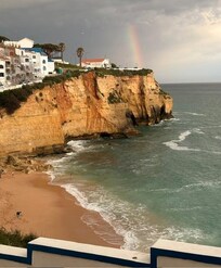 Lovely hotel with amazing views of the beach. Very nice room with modern tiled bathroom. Having breakfast delivered to eat on our balcony was great! Staff very friendly and helpful. It is about 6 flights of stairs up from the beach but that’s how you get a great view! Carvoeiro was a perfect location, we hiked from Praia da Marinha along the 7 Hanging Valleys trail back to the hotel in about 3 hours.