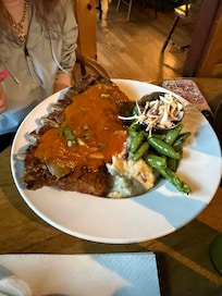 This location is nice and cozy. It's right in the forest so you feel secluded from the traffic. The cabins are separated into 2 rooms in one cabin like a duplex. The room decor however creeped us a little l. There was a skull on the dresser and the rustic fan was weird to look at. I still enjoyed the place very much. The spa was relaxing and the breakfast they serve was so great we finished everything we got. Also the shared kitchen is nice. We brought some food for us to cook. Nice concept. Thank you for having an ev charger it helped us out.