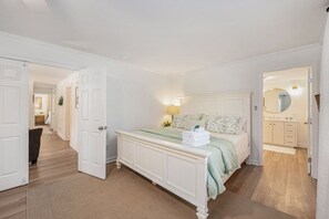 - Bedroom 1 with king bed, sitting area, and private ensuite bathroom with walk-in shower