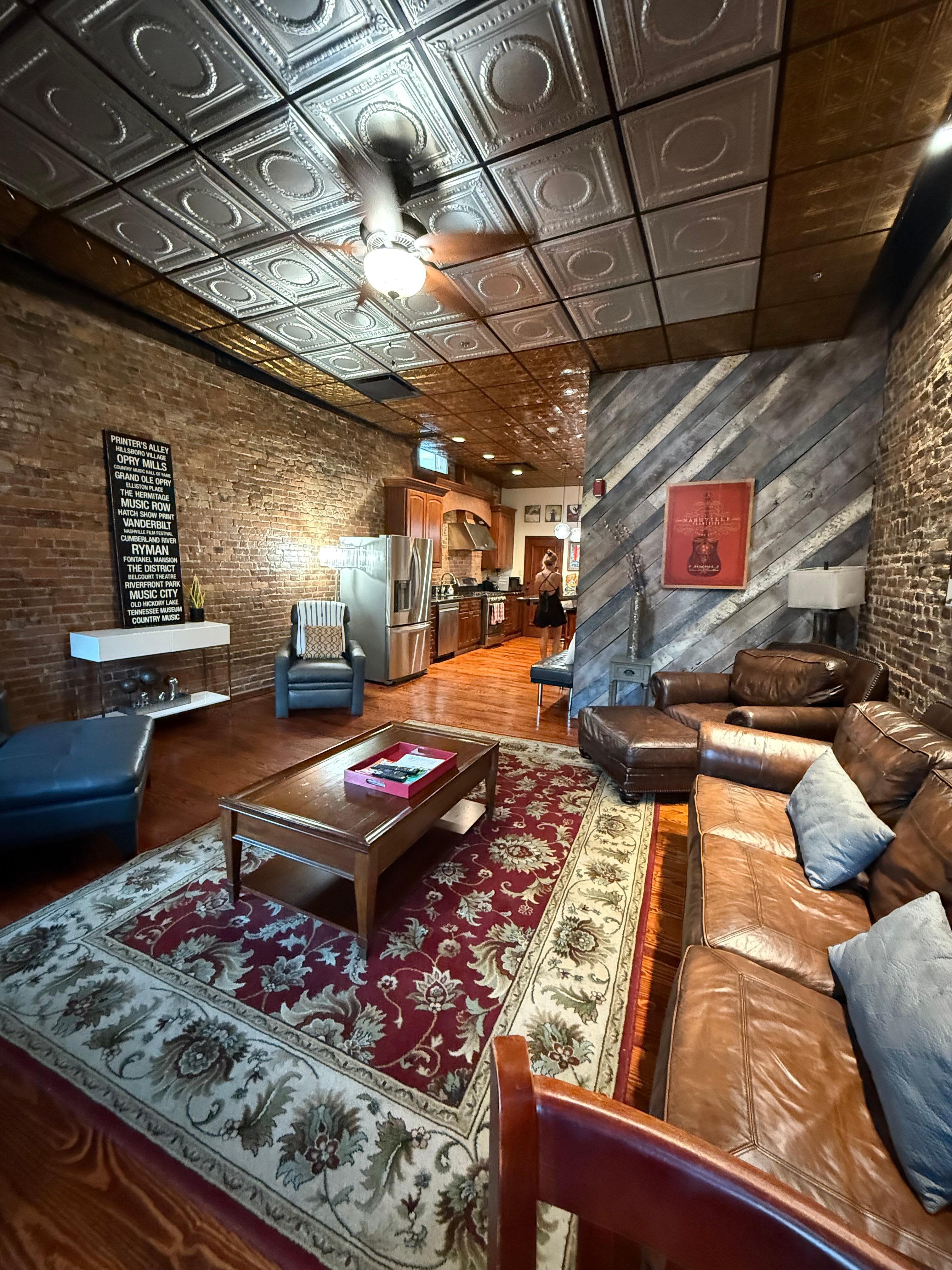 2 Bedroom, 3 Bathroom Private Top Floor in the Heart of Downtown Nashville! Includes an additional office space with more beds. This beautifully restored loft boasts brand new amenities, rustic yet modern decor, as well as a star-studded view of historic downtown Nashville. Located on the 3rd floor (top floor) of a historic building on 2nd Avenue N, just seconds from Broadway, our loft delivers a truly unique opportunity to put yourself directly in the heart of Music City!