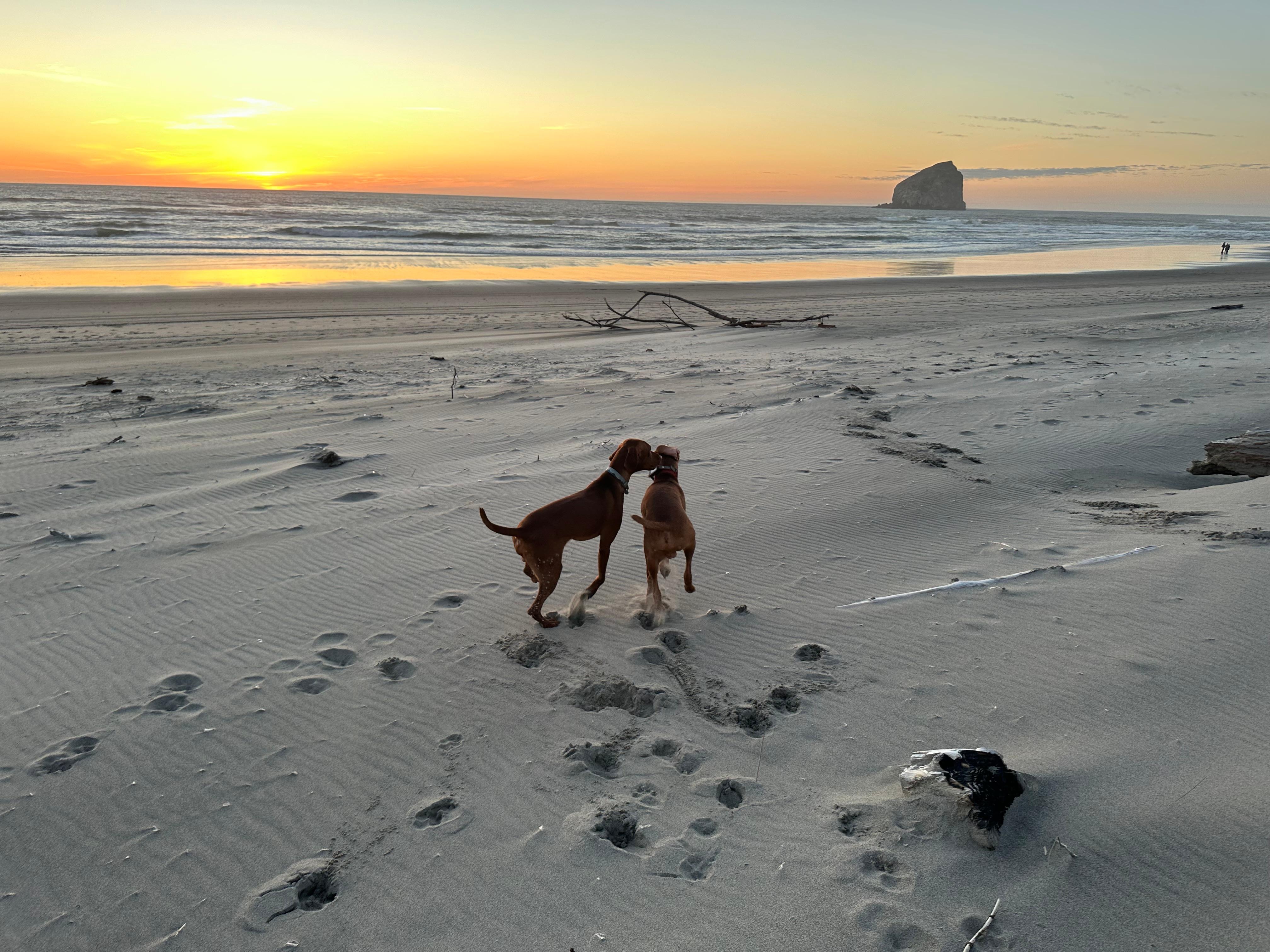 Step out onto the large wrap-around deck, complete with picnic tables, lounge chairs, and a BBQ grill for guest use. A cornhole set is also available for guests to enjoy some friendly outdoor competition. From the deck, descend the stairs directly onto the shifting sand dunes. These dunes create a private area for families to enjoy the sand without the wind and crowds of the beach. A short walk through the native beach grasses will take you to Pacific City's famous beach.