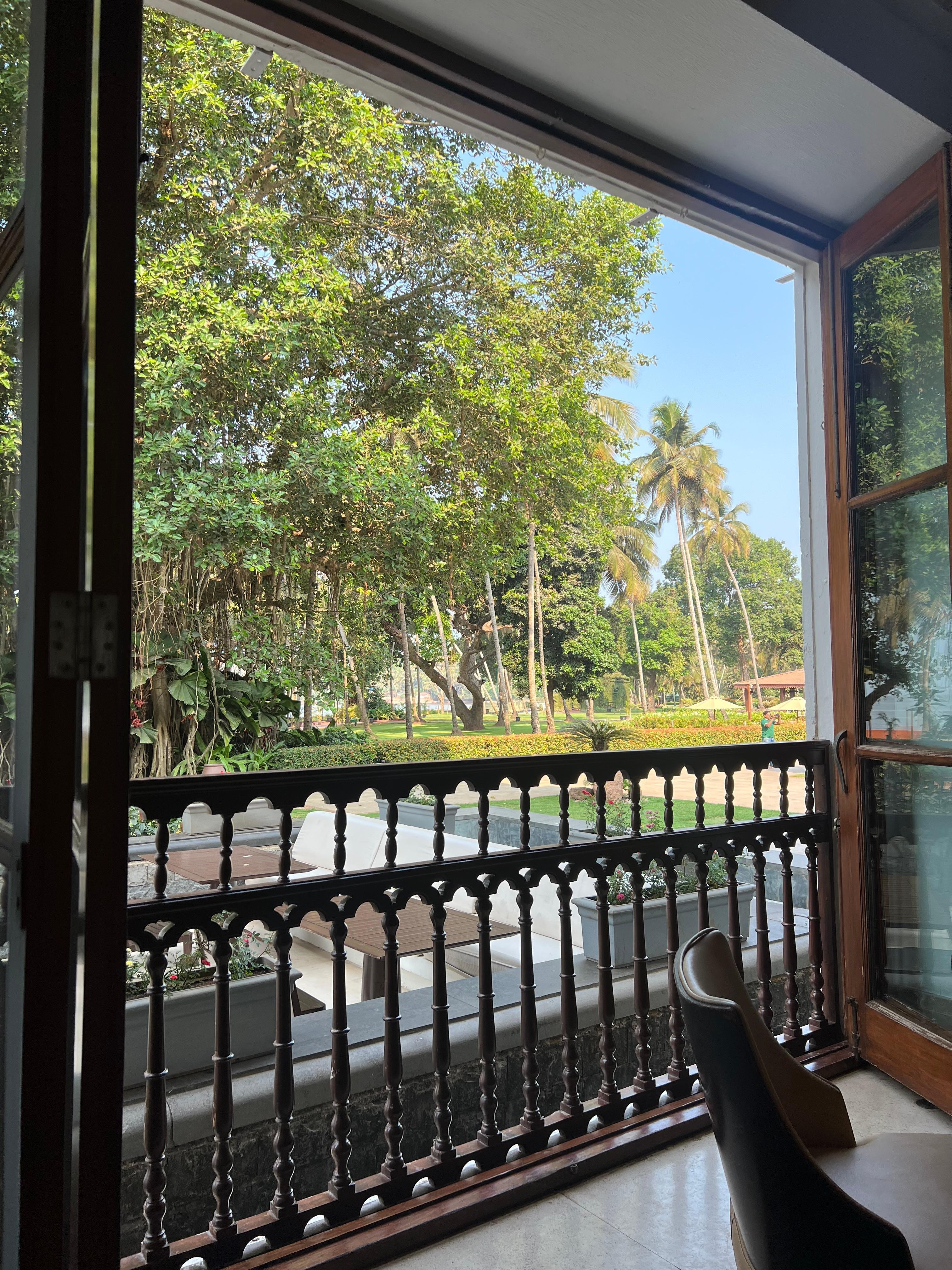 غرفة - سرير ملكي - بشرفة - منظر للحديقة