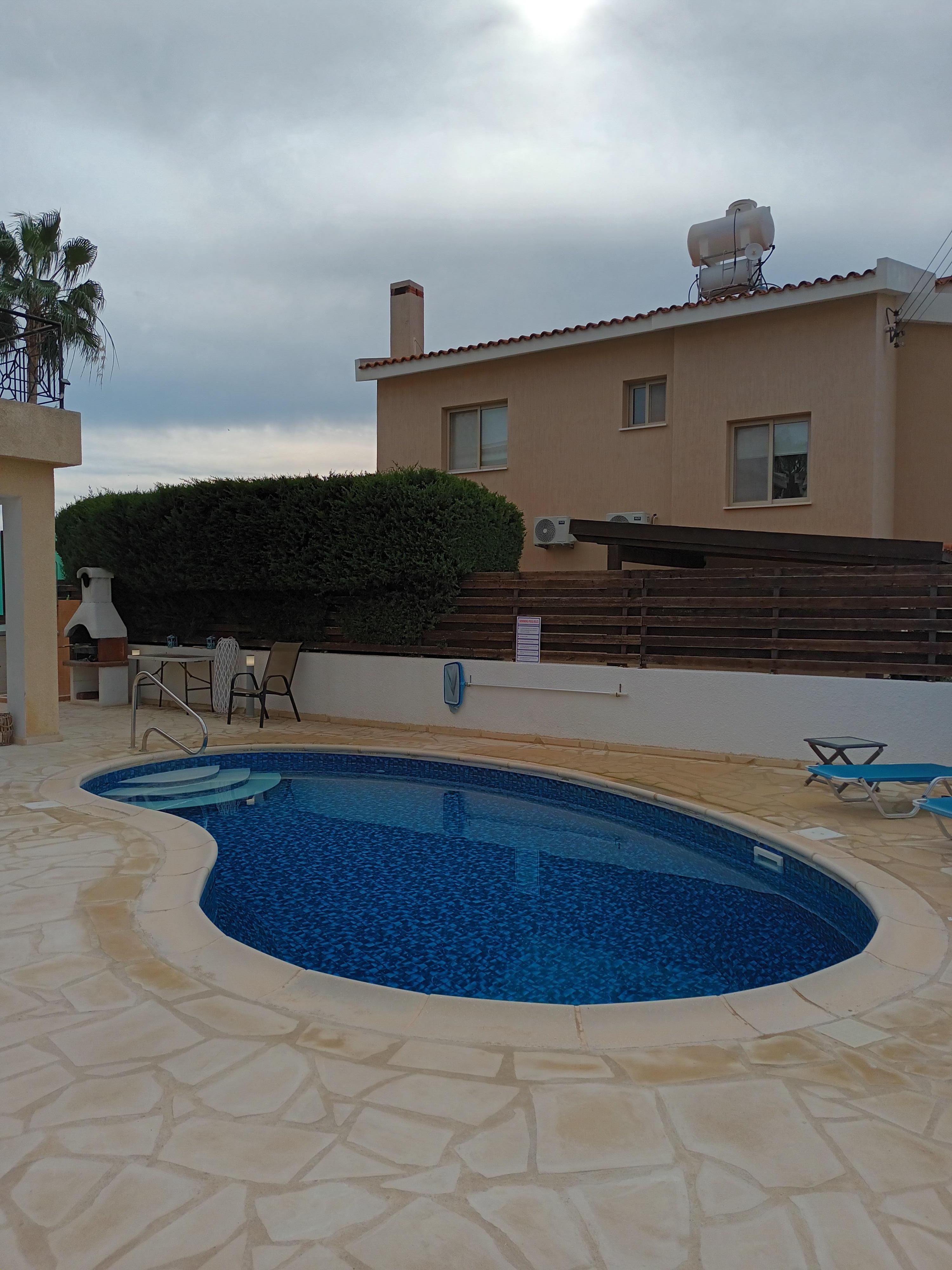 The villa is in its private grounds including a private pool (8x4m) with Roman steps for easy and safe access for children. We have extended the tiling by 30 square meters around the pool area to provide more room for sunbathing. New privacy fencing has been installed along the front of the villa to add further seclusion.