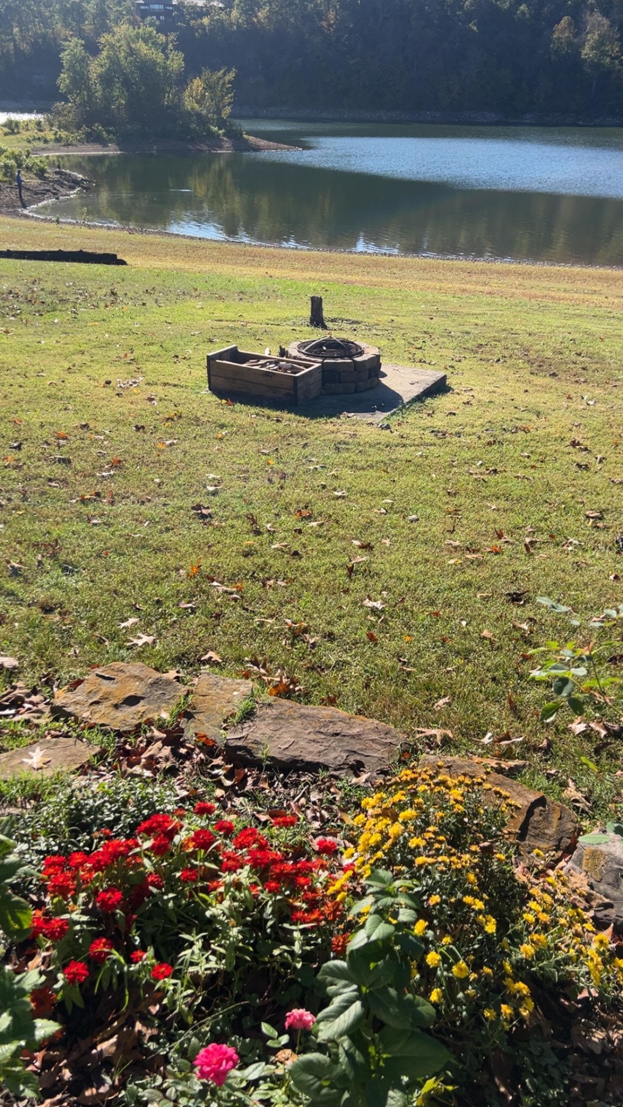 We have a big grassy area between the house and the lake with a fire pit and tree swing.