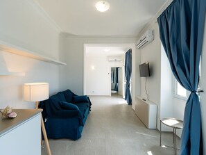 "Nausicaa", 3-room apartment 100 m2 on 2nd floor. Very comfortable and cosy furnishings: living/dining room with 1 sofabed and TV. Exit to the balcony. 2 double bedrooms, each room with fan. Kitchenette (4 gas rings, toaster, kettle). Shower/bidet/WC. Air-conditioning, forced-air heating. Heating available only from 01.11. to 15.04. Facilities: washing machine. Internet (WiFi, free). Please note: maximum 1 pet/ dog allowed. Smoke alarm, fire extinguisher. IT008055B4NOYHITSU