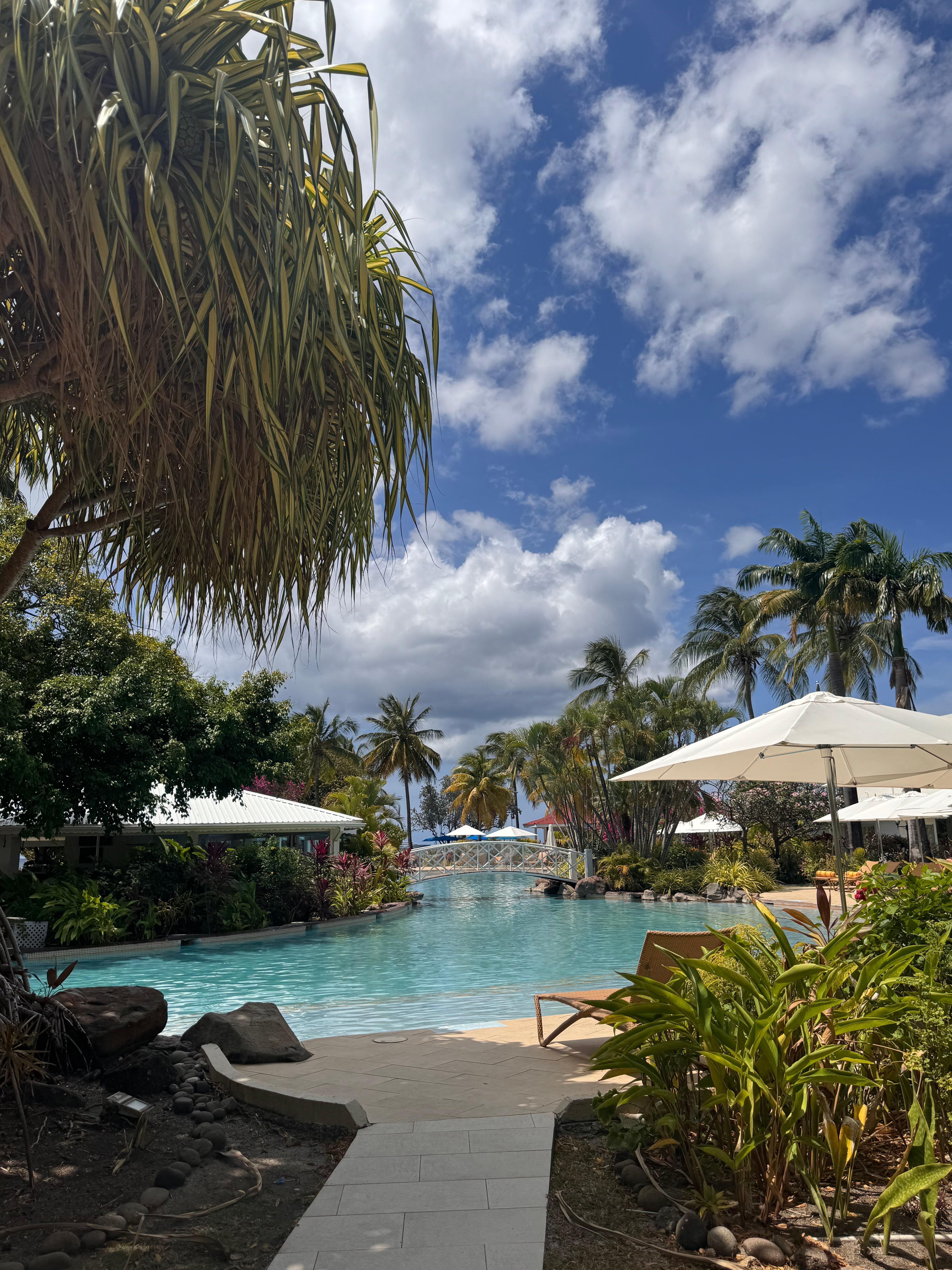 2 من حمّامات السباحة الخارجية، مظلات على حمّام السباحة، مقاعد للتشمس