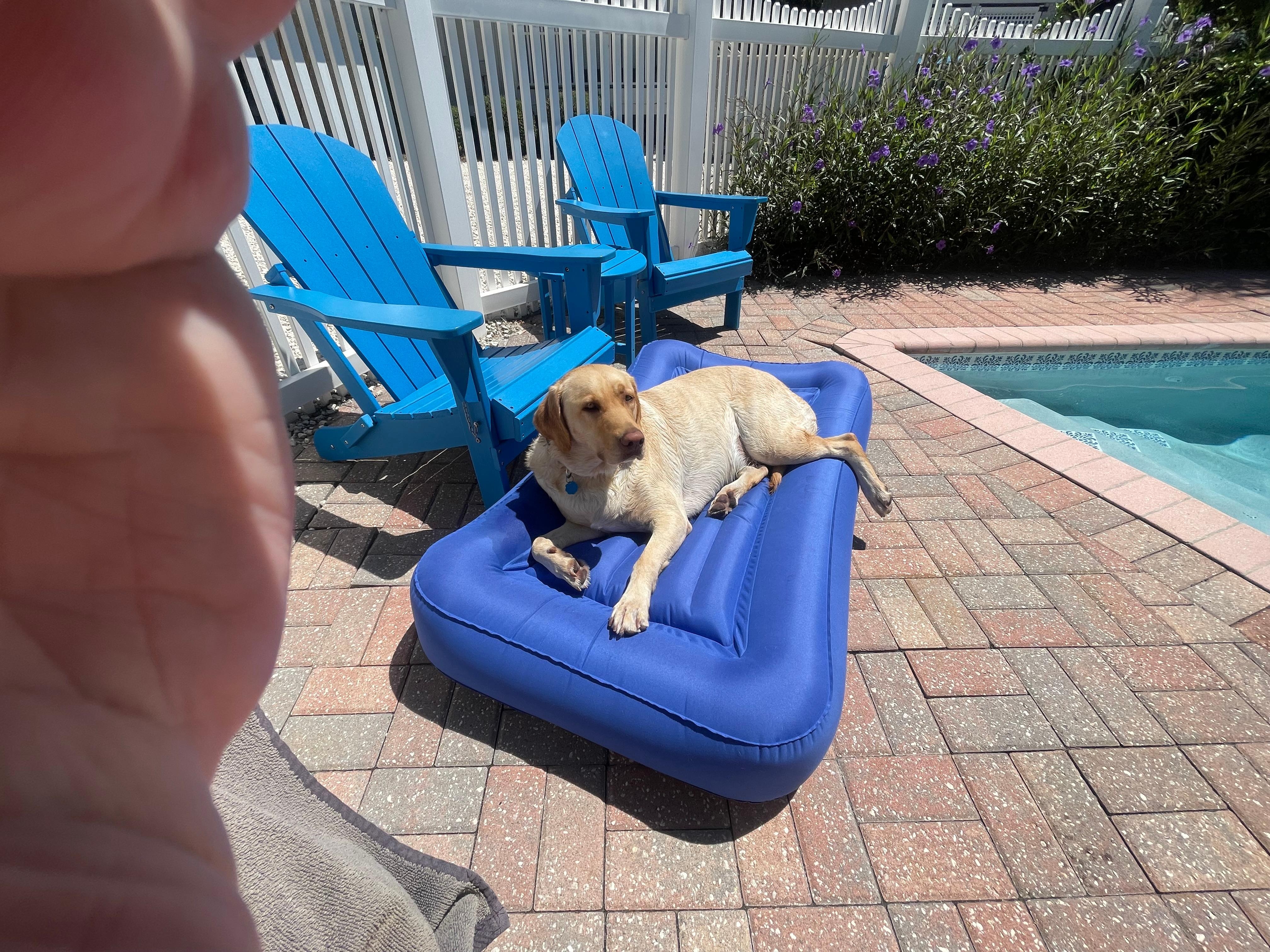 The living area has plenty of seating and a very comfortable slipcovered sofa and loveseat (with full size hide a bed) and chair. A fireplace anchors the light filled room and a beautiful painting by Coastal Artist is hanging over the fireplace. Livingroom opens up to the screened in porch at the far end of the room. The screen porch and Bed Swing will become your favorite spot to relax while staying at Kahlua's Cottage. The dining room table is an antique farm table and seats six to eight. The wall color in the dining room and kitchen reminds you of the color of the Mediterranean or the Caribbean. All the windows in the dining room view the private pool and hot tub. The fully appointed kitchen boast stainless steel appliances, gas stove, Refrigerator and unique open viewed glass cabinets above the kitchen peninsula area. There is patio off the screen porch that has a gas grill and a charcoal grill plus a table and 4 chairs.