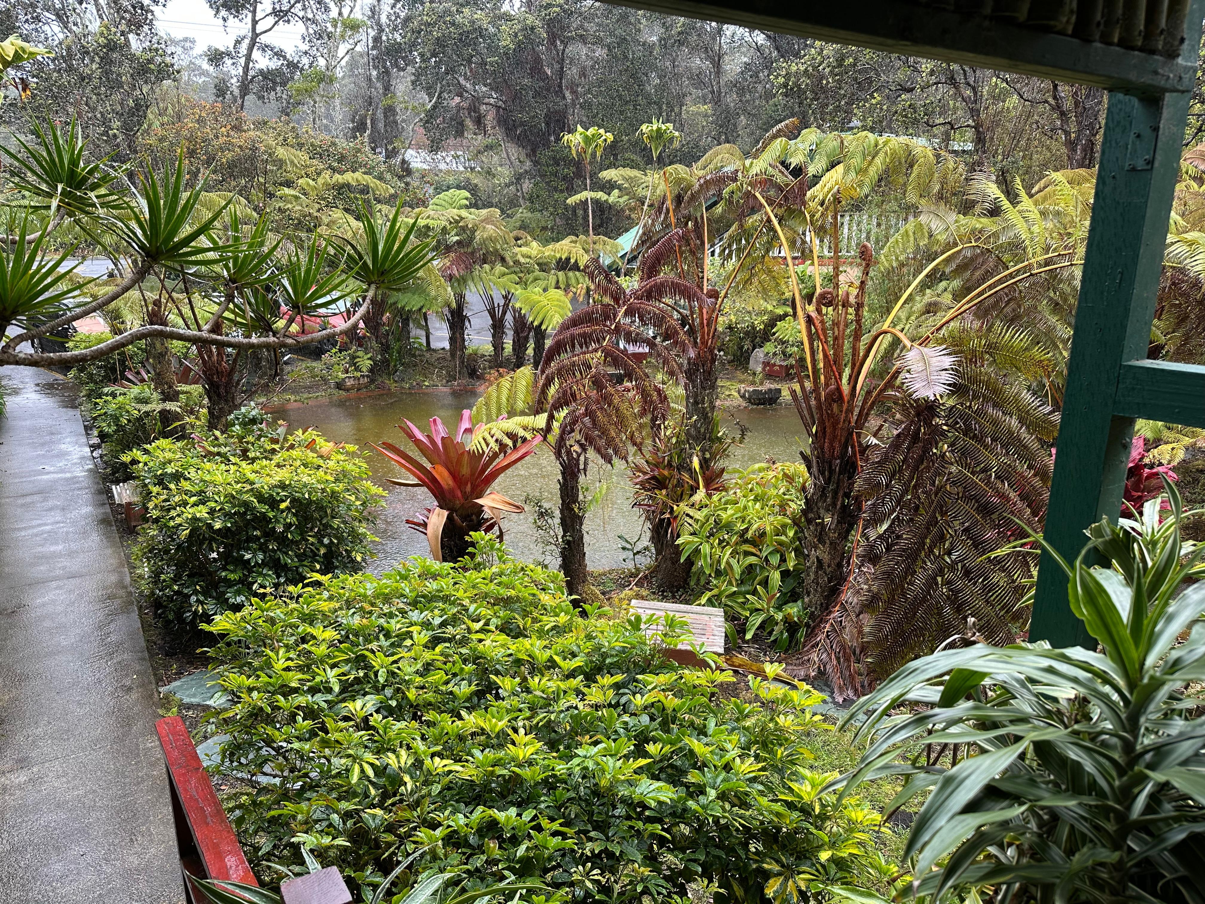 A visual treat on our journey around the Big Island. We loved Room 104! Huge dining table/island, double sinks and double showers in the bathroom, ample supplies. Only suggestion is to have more dinner plates and utensils. Beautiful grounds with koi pond, waterfalls. Quick drive to Volcano and Village. A must when visiting Volcano. Thank you for a wonderful stay!
