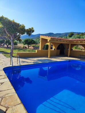 Farmhouse with swimming pool and tennis on a 1 hectare estate of orange and olive trees, 1 km from the sea.