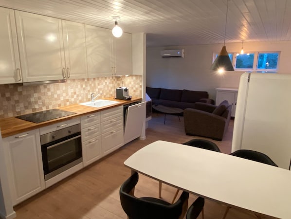 Totally new renovated, Dish washer , washer dryer. All linen and towels included. House 60m2 with large indoor/outdoor terrass 30m2 and guest sleep house with bunk beds 10m2, Small fishing boat with motor included. the lake Bolmen is famous for fishing .You have a private nestled beach 3-400 m away. Nearest town Ljungby 30km and nearest shop in Tannåker 10km. The house has a private setting by it self with nice field views.