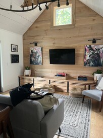 The Plott House is magazine beautiful. We watched the build on TV. It’s great for a weekend. The hosts have done well to provide the things guests would need. It was very clean. The kitchen is user friendly, but we didn’t cook while staying.The road is very narrow, and nearby trees were dropping tennis ball sized nuts into the road. None of these nuts fell into the parking area, thank goodness.We are older. I’m 55 and my husband is 74. We would have welcomed a no slip mat to use in the shower, as it gets very slippery when rinsing soap and conditioner. Something with drawers or baskets for clothes to unpack into in the bedroom. More than 5 hangars in the closet. A pair of hooks in the bedroom for robe and night clothes to be placed during the day. We had trouble with the love seat sliding back when trying to stand up from sitting on it. It would slide back into the dinette in the kitchen, moving it all. Some type of rubber cup on the feet, or some extra piece of wood secured to the floor to stop the movement. The chairs with arms on the back deck were much easier to get out of.We came to ride the train and see fall color. We enjoyed ourselves. Walked to downtown everyday. We visited the hostess at her art gallery and brought home an art piece. The bakery on Main Street was our favorite spot. The cinnamon rolls were amazing, great coffee, and wonderful cheesecake! We also enjoyed the animal rescue society thrift store across from the Ford dealership. Thanks so much!