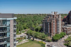 Blending warm desert tones with sleek modern touches, this high-rise retreat offers stunning skyline views and ultimate walkability. Just steps from the Bow River, Riverwalk trails, and Calgary’s top dining and boutique shops, you’re perfectly placed to explore the city at your own pace.