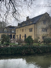 The Slaughters Country Inn in England offers a peaceful retreat with an on-site restaurant serving breakfast and dinner. Enjoy scenic views in the charming garden, relax with drinks at the bar, connect to free WiFi, store luggage, and use extended parking.