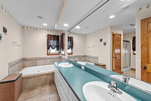 Great Room with Gas Fireplace, TV/VCR/DVD and Surround Sound with CD, Spacious Kitchen and Dining Area, King MBR with Whirlpool and TV/VCR/DVD.