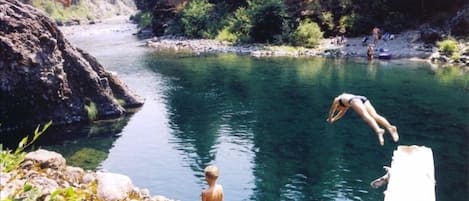 In addition to the river being on the property there are several small lakes with good fishing that can be driven to. Also there are several lakes that are good backpack trips in the higher mountains.We also have a trail head to the Kelsey trail near the house. The Kelsey trail is part of the Pacific Crest trail.For more information see the Six Rivers National Forest map....many things to do.....if you see a bear just make some noise and he will run away......harmless......just don`t leave tasty smelling food out that would attract them......Jim