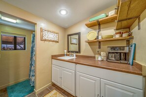 • Quaint, fully stocked kitchen (yes, you can make pancakes here)