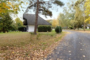 The quiet location amidst nature is ideal for hiking, cycling and relaxation. The holiday home features a large bathroom with shower and toilet, as well as an additional small bathroom with washbasin and toilet. You also enjoy a living room with TV and fireplace, as well as air conditioning to ensure pleasant temperatures in summer.