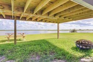 - Wood-burning fire pit (bring your own wood), picnic table