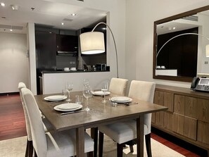 شقة فندقية مزودة بمطبخ وشرفة في دبي