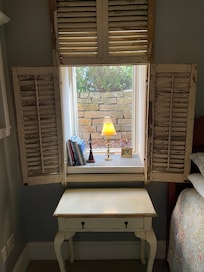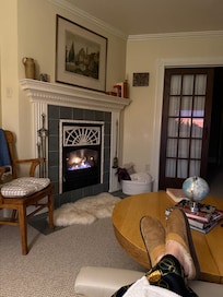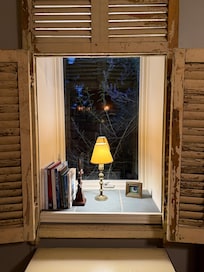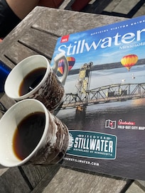I cooked quite a bit because I am not a huge fan of the Stillwater restaurant scene and found the kitchen to be incredibly well stocked for my needs. This is an extraordinary rental with a very comfortable living room and working gas fireplace, dining table and a generous host who provides everything one needs. It's a cozy place with beautiful interior design, great outdoor space and view of extensive back yard. The location is great for walking...a short walk to the trailhead of the St. Croix Valley Pathway that can be hiked or biked. We walked into town, across the two bridges that cross the St. Croix River into Wisconsin. Stillwater is a great place to have breakfast with the Oasis Cafe being the closest to this cottage. We really enjoyed our time!