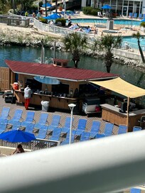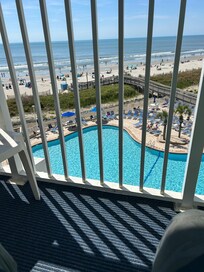 The best things about this place were the beautiful ocean views from our 9th floor balcony in the south tower and the central location of this resort, conveniently located between North Myrtle Beach and Myrtle Beach attractions. The unit itself was very, very dumpy and dirty and was in dire need of an upgrade and a deep cleaning. Confederate flag decor was not appreciated by northerners. The TV channels were difficult to figure out, the furniture and cabinetry had seen much better days. The beds were squeaky but ok. Several of the outdoor hot tubs were out of order, as was one of the lazy river pools. The hot tubs that were working were always packed to the gills with an average of 10 to 15 people per hot tub all the time--which seemed like an over capacity problem and did not make them appealing. This was probably because the weather was unseasonably cold when we were there, and the main outdoor pools were not heated. The indoor and outdoor pools closed when there was any hint of lightning. We also had to sidestep around a significant amount of construction to get around the pool deck. Overall, this place needs some TLC, some upgrading, and a deep cleaning. Location and views were really good.