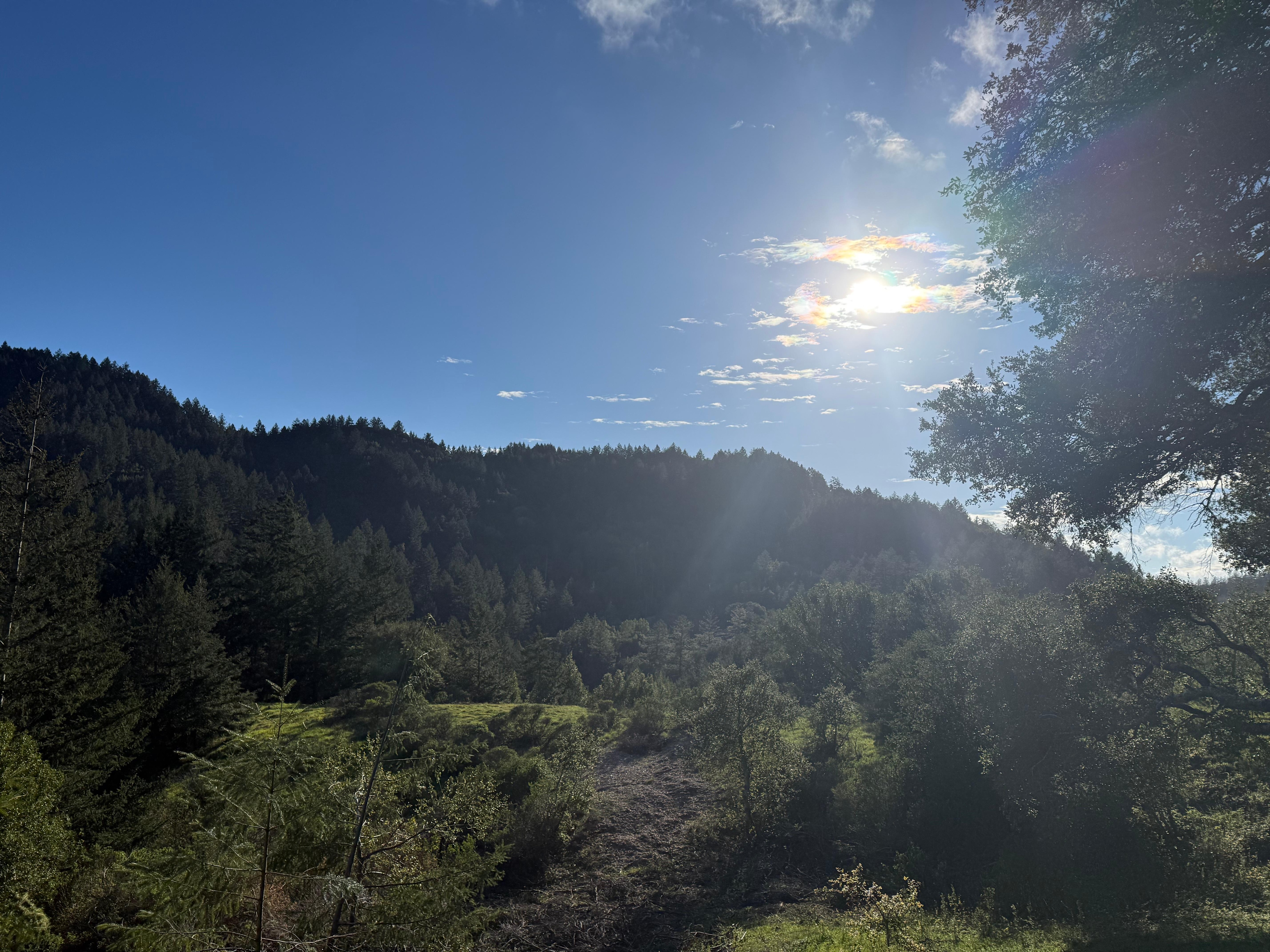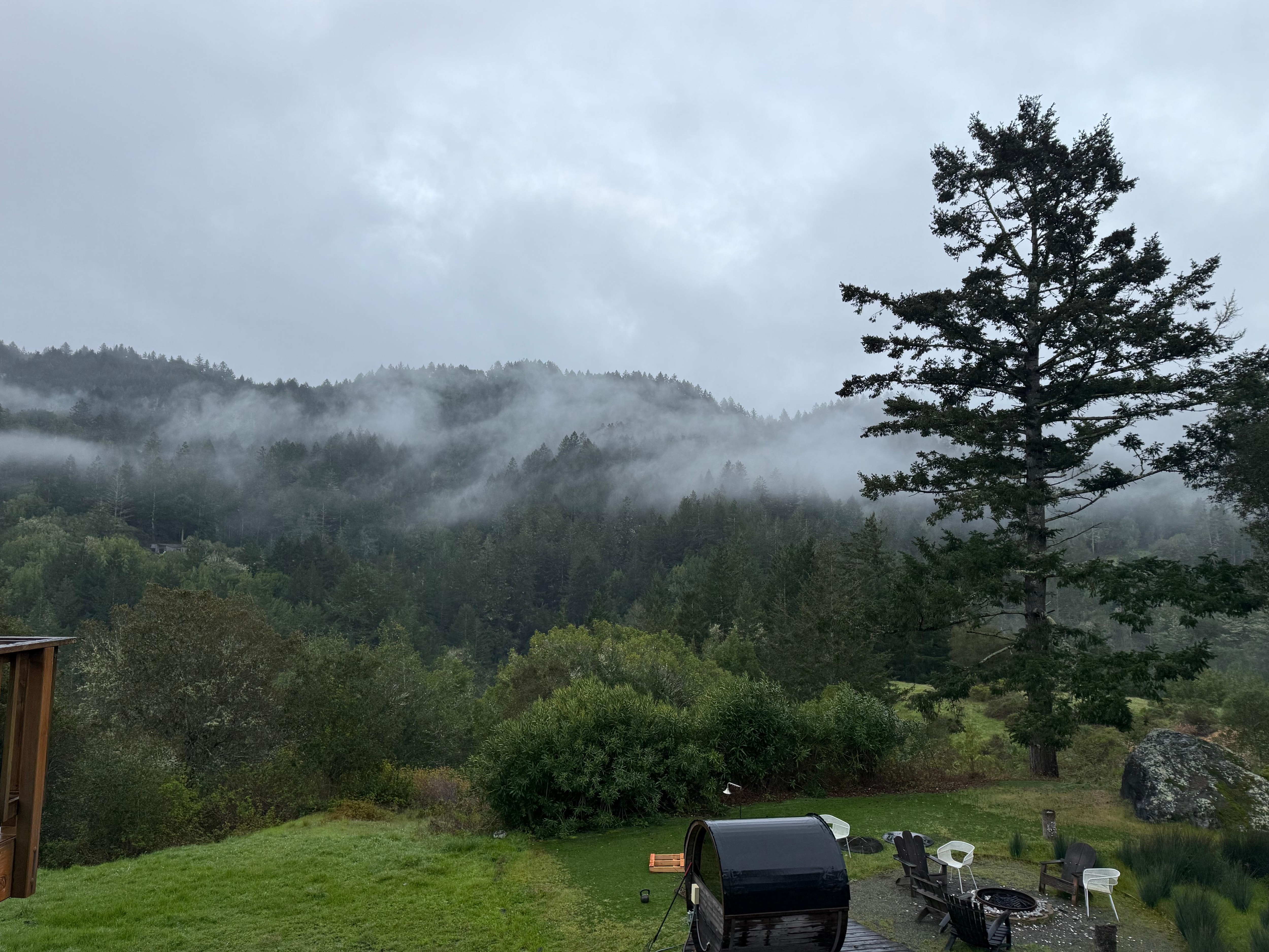 Beautiful surroundings, nature everywhere! We saw a fox along the roadway, deer and there was quiet all around. Because of clouds, didn't see night skies, but likely can at different times of year. This was great place to be to attend a concert at Rancho Nicasio. Cozy room with fridge, bedding, good workspace desk, microwave, dishes...all as described.