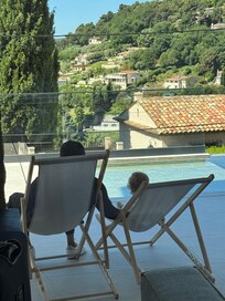 Loved everything about staying in this property. Sadly the weather wasn’t conducive to swimming but the pool looked beautiful and was clean and warm.House was pretty perfect for a toddler and they had everything one needs for a child.High chair, crib, bath, books, kids table and chairs and some toys which was perfect for us traveling from the US.Location was great and pretty central for some lovely day trips to Antibes, Monaco and Villefranche!Our host was easy to communicate with and couldn’t do enough for us….would definitely recommend this vacation rental.Pictures are absolutely accurate and the village of St Paul de Vence is literally a 6 minute drive away.Driveway not for the faint of heart with a car rental…but fine once you know how to navigate.