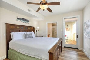Sleeping Arrangements: A king bed in the primary bedroom, a queen bed in the guest bedroom, and a queen-size sleeper sofa with linens provided.