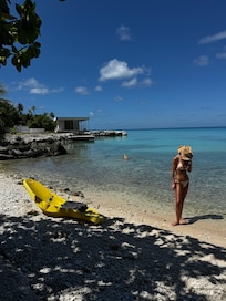 The room was large, beautiful and clean. It came with a lovely view of a lagoon, and had everything we needed including a large and airy bathroom with nice toiletries, faultless internet connection and a very well-stocked kitchen with good quality utensils and equipment. The fridge was loaded with breakfast food every day including orange juice, delicious homemade yoghurt, and eggs and more fresh bread than we could possibly finish. The optional dinners are cooked to order and customisable. We had the room all to ourselves (they do not rent out the second room unless the travelers are part of the same group), complete with beach chairs, a swing, kayaks, in a beautifully decorated lounging area, and snorkeling equipment and showers nearby. The snorkeling off the beach was great.