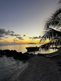 - la localisation: est parfaite, face au lagon, avec plage privée et magnifiques couchers de soleils. Il est très facile de se fournir aux magasins du village, (mention particulière pour le snack, qui fait d'excellents plats à emporter )