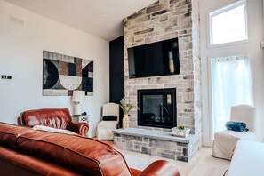 This welcoming two-storey cottage is designed for effortless comfort and good times. The open-concept living area, flooded with natural light, invites you to relax by the indoor fireplace or gather in the kitchen to cook and share a meal. Step outside onto the spacious terrace to grill, dine, or simply take in the soothing view of the river.