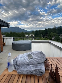 We enjoyed our stay and there was easy access to the host. I love it when I'm not dealing with a business. The home is beautiful. We were traveling with my 89 year old mother and the stairs were a bit too much for her. That being said, the beds were comfortable, the kitchen had everything we needed, and the roof top patio was wonderful. I would have loved to spend more time on the roof. There were solar powered lights, a hot tub, a fire pit and a patio table. In spots, there were views of the mountains. The location of the home was ideal for us. It was easy access to get to trails, food, and groceries. I hope to get to return. The Squamish area is Gorgeous and there is so much to do. Thank you so much for allowing us to stay in your home.