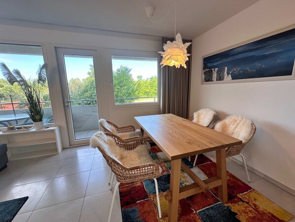 Helle und großzügige Wohnung mit großem Balkon, Tennisplatz, Waschmaschine und Trockner. Zentral gelegen zwischen Bad und Dorf. 180er Doppelbett, viel Stauraum, Regendusche, Smart TV, Fußbodenheizung. Bettwäsche und Handtücher sind enthalten.