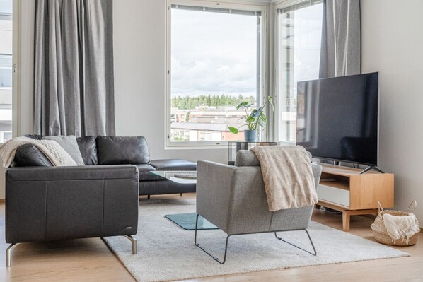8th Floor 1BR Home with Sauna, Balcony & Views