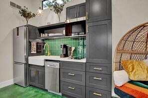 -Fully equipped kitchen with (cooktop, microwave, refrigerator with ice maker, and Keurig coffee maker)