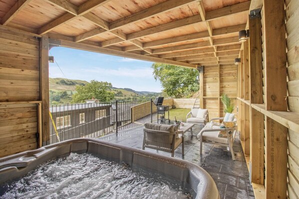 - Enclosed elevated garden with a hot tub, BBQ area, comfy outdoor seating and an outside tap