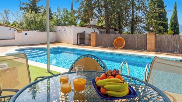 In the outside space, you will find the private pool and several sun loungers, that guarantee enough moments of relaxation under the sunshine. A BBQ and a parking area are also available for the guests of the villa. The house features several terraces where you can enjoy the sun or shade from the hot sun rays, read a good book or share a delicious lunch under the shade of a lush green ivy and jasmine. The panorama offered around the house is simply astonishing and, in the clearest days, you can even spot the mountains of the Sierra Nevada and the Mediterranean Sea.