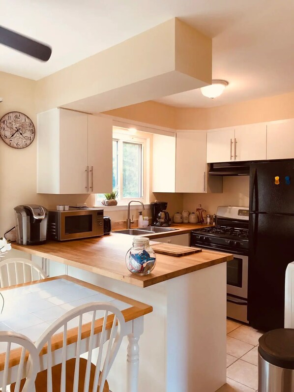 In a quiet, tree-lined neighborhood, this modern and bright home offers the perfect retreat. Enjoy three comfortable bedrooms with new mattresses, a sun-lit kitchen for meals together or on the deck outside. With high-speed internet and an Amazon Firestick to stream your favorite shows in the living space equipped with charging stations.