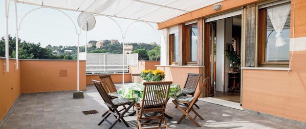 Outdoor dining - Comfortable and spacious penthouse with terrace overlooking the sea in the historic center  (Arenzano)